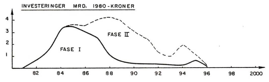 Had Phase II also included the planned Gullfaks D platform, investment levels would have remained higher into the 1990s. Based on the 1980 projections, Gullfaks D alone would have cost NOK 5 billion.