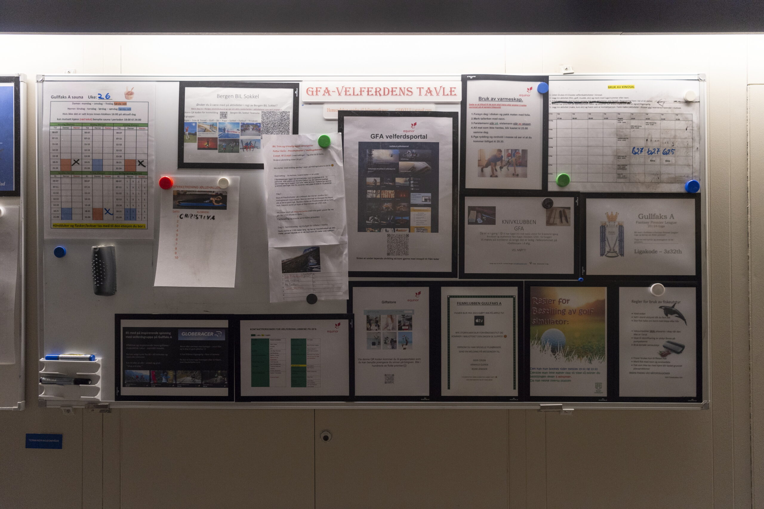 Workout equipment is also placed strategically in spots where people tend to sit still for long periods, like the control room or laundry facility. The goal is to counteract skeletal and muscular issues—a problem not only in Norwegian society at large, but on the platforms too, explains Anne Marthe Våge Djønne, a nurse on Gullfaks A.[REMOVE]Fotnote: Nurse, Anne Marthe Våge Djønne, in conversation with Shadé B. Martins, Ole Kvadsheim and Julia Stangeland (all Norwegian Petroleum Museum) onboard at Gullfaks A, 26 June 2024.