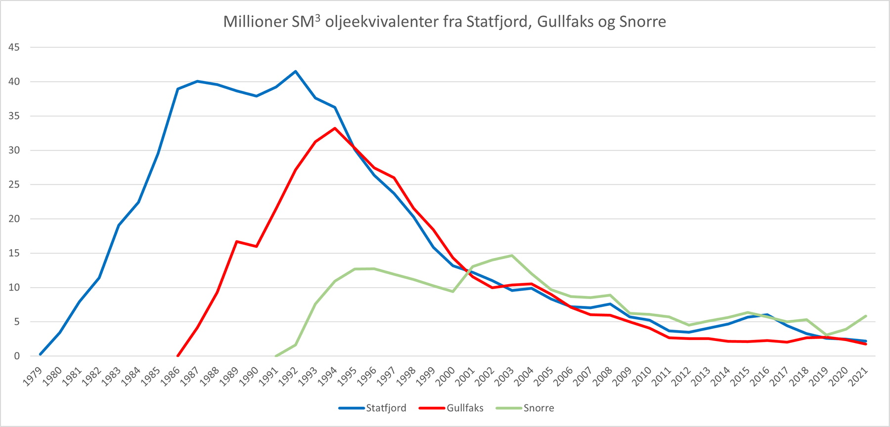 Fotnote: Tallene er hentet fra Norskpetroleum.no for Statfjord, Gullfaks og Snorre.