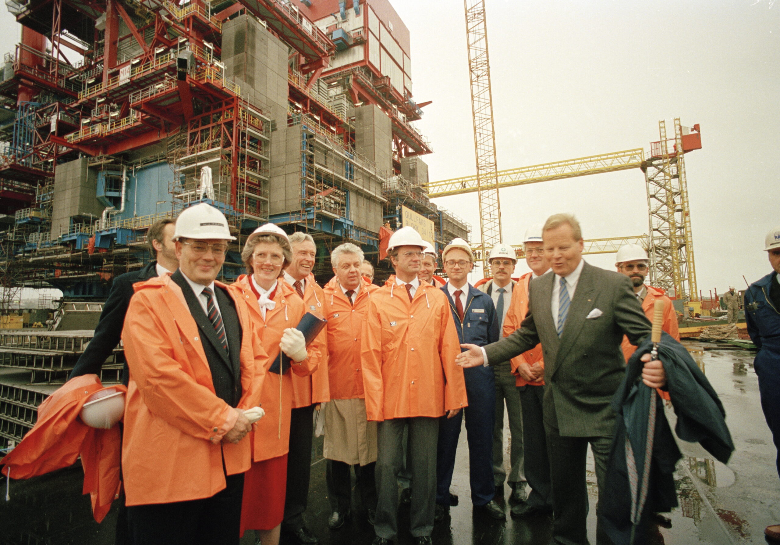 Deretter gikk turen til Norwegian Contractors i Hinnavågen, hvor betongunderstellet til Gullfaks C var under bygging. Neste post var Moss Rosenberg Verft, hvor dekket til Gullfaks B befant seg. Alt arbeid på maskinkaien stoppet opp mens assisterende direktør Hans Frank tok imot svenskekongen. Kong Carl Gustaf ble deretter tatt med opp til toppen av dekket, hvor det i denne perioden ble arbeidet med å knytte sammen moduler, gangveier, rør og kabler.[REMOVE]