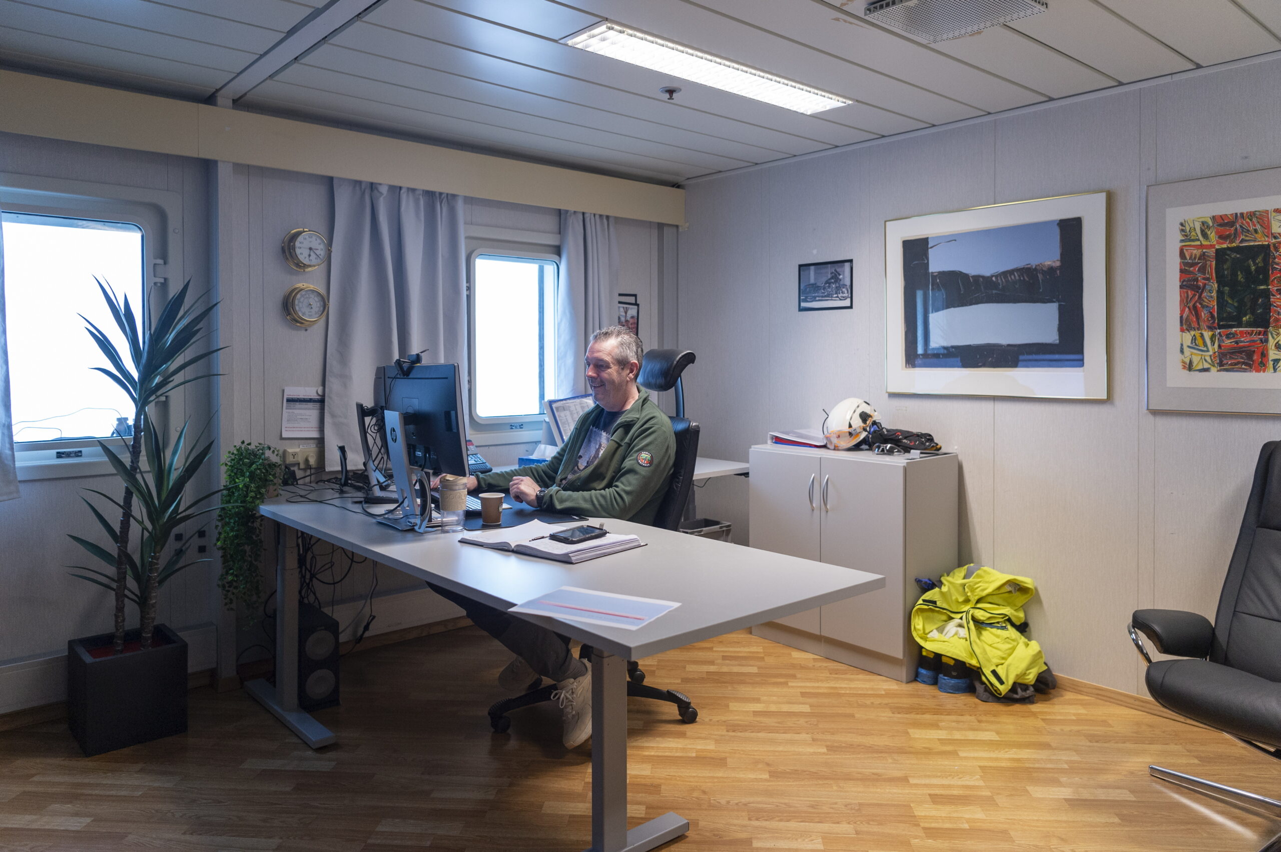 I slutten av juni 2024 var tre av oss som arbeider med Industriminne Gullfaks på besøk på Gullfaks A. Kl. 17 dag to var vi med på det daglege SBP-møtet (apropos forkortingar), Samordna boring- og produksjonsmøte.